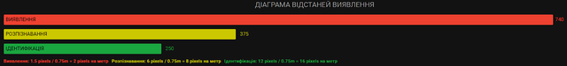Діапазон ідентифікації людини: 250 м